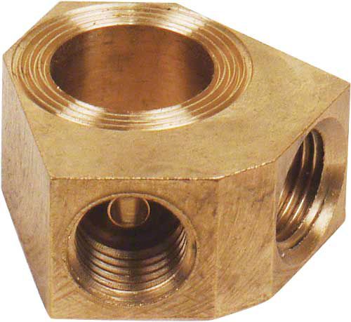 A special bolt attaches this to the master cylinder, the brake light switch & one brake line thread into this.