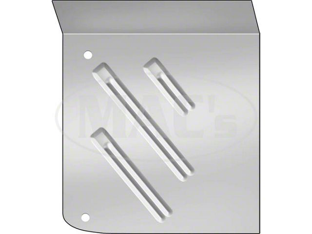 The 1958-1960 front floor pans repair the area under the driver and front seat passenger's feet. The panels extend 3" up the firewall and back to the front seat. Panels are stamped with the correct stiffening grooves.
