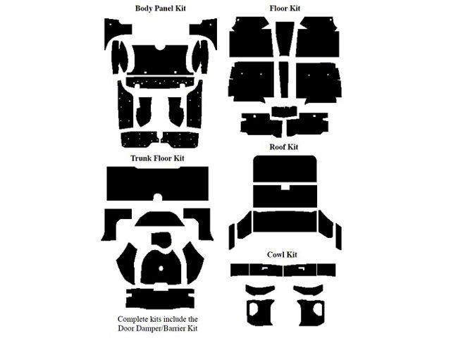 Includes floor, roof, cowl, body panel, trunk floor & door kits.