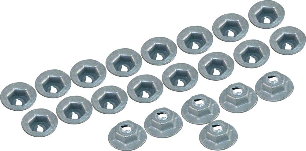 It's the small things that can slow down the restoration process on your 1958-1962 Corvette. Ecklers Corvette offers this correct reproduction, 22 piece fender mounting speed nuts set. Made with correct factory finish and specs, these will aid in a straight forward easy installation. Trust Ecklers Corvette for all your exterior and interior part needs.