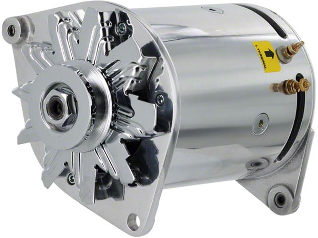Get the reliability of an alternator but the classic look of a stock T-Bird generator. 75 amps at highway speed, and most important, 60 amps at idle. Contains a second terminal so the GEN light in the dash wil work.