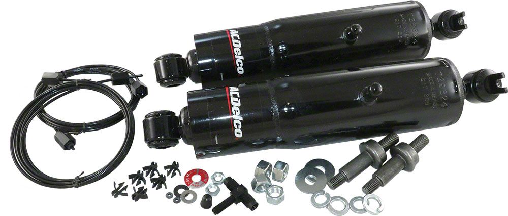 Eckler's Late Great Chevy Air Lift Shocks are designed to help provide better handling for temporary situations, such as when a vehicle hauls a heavy load or tends rub the wheel wells. They have an adjustable air pressure, between 25 and 200 psi, and up to 1,100 lbs (per pair) of load-carrying capacity. Under loaded conditions, these shocks help maintain level vehicle height by adding or releasing air as needed, assisting in the stabilization of alignment angles, reducing other suspension component wear, improving handling, and reducing the risk of bottoming out. Stabilize your lift level and increase your driving capability with Eckler's Late Great Chevy.