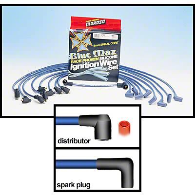 Moroso's "Blue Max" Spiral Core Spark Plug Wires should be used whenever headers are installed. We've selected the Moroso brand for three very good reasons. First, they are made of the finest high temperature silicon available to withstand the extreme temperatures headers produce. Secondly, Moroso's unique 8mm "Spiral Core" design delivers the voltage carrying capability of a metal conductor with radio noise suppression benefits of the stock wires, and thirdly, they are routed just like the factory wires. Trust Eckler's Late Great Chevy for all your performance parts needs.