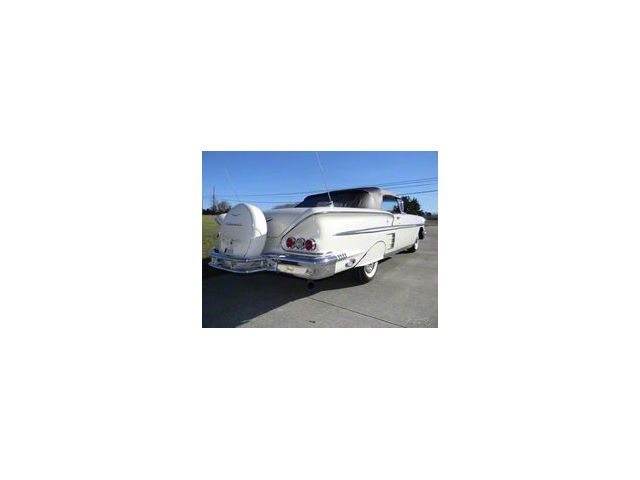A beautiful reproduction of a popular original accessory. This kit includes chrome horseshoe bars & bumper adatpers, bumper-to-frame brackets, tire carrier including latch, back pad, license light & bracket, steel gravel pan bracket, face plate, ring & installation hardware. All center bumper assembly components, upper/lower horseshoe rails, left/ right bumper adapters & the bar spacers are show chrome.