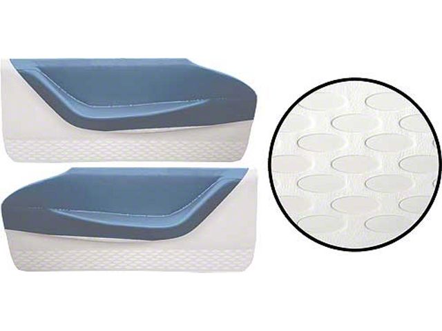 1958-1959 door trim panels are Bison grain vinyl and have built-in armrests and embossing on the lower section as original. The first color listed is the color of the upper part of the door panel, the second color is the lower.