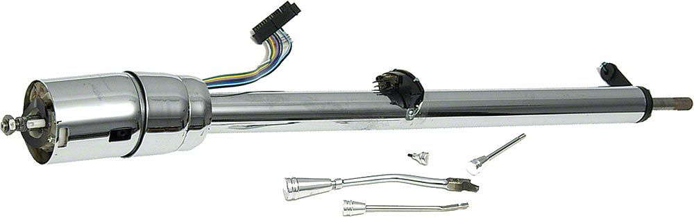 Eckler's Late Great Chevy is happy to offer this new floor shift tilt steering column for your 1958 Chevrolet. Manufactured by ididit, this chrome tilt steering column will completely change the way you feel about driving and getting in and out of your car. Ididit is the best name in the steering column business, so you can be sure that you are getting the most quality steering product. The shaft at the bottom is 3/4"-36 spline which adapts to your stock steering shaft. The column is fully wired and adapts easily to the stock or aftermar