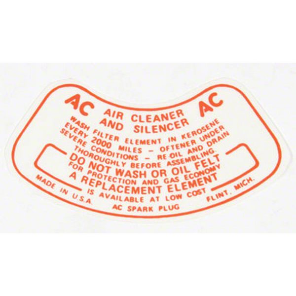 This Eckler's reproduction air cleaner service decal has been manufactured to original factory specifications using today's modern manufacturing techniques. You will find the fit, finish and function will work superbly for your restoration. In addition, using a reproduction air cleaner service decal from the Eckler's will add authenticity and value to your vehicle.
