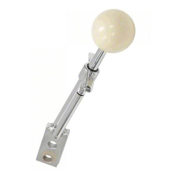 Construction and Appearance. This shifter handle is constructed using high-quality materials and engineered with modern manufacturing techniques to ensure durability and longevity. The handle includes a bolt-on white shift ball that adds a vintage touch to your interior.