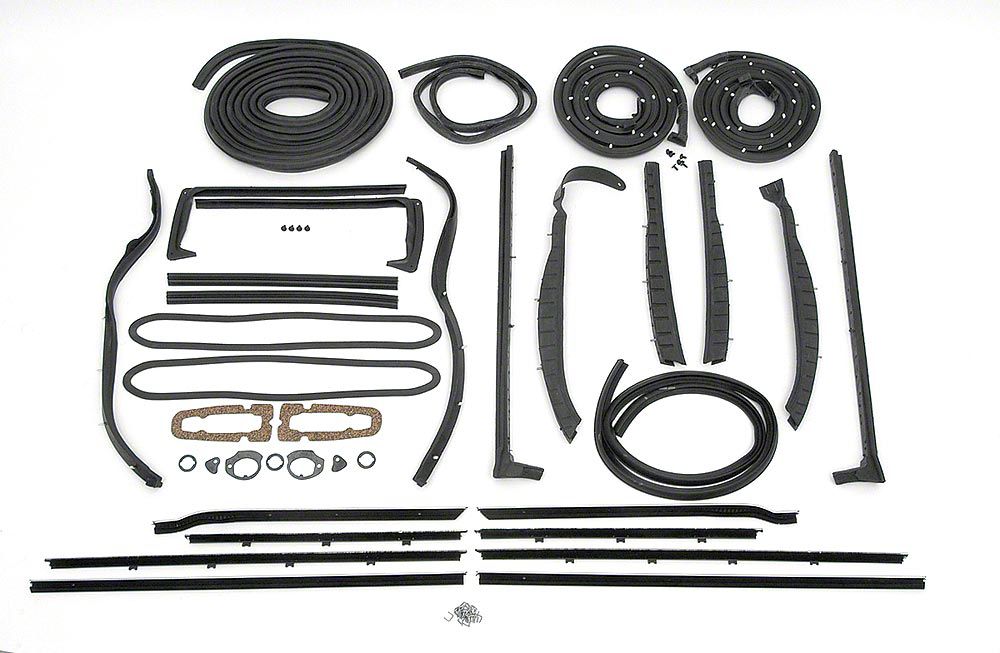 No vehicle is complete without the protection of weatherstripping and seals, however, not all weatherstripping and seals are the same. You can count on Eckler's to bring you only the highest quality weatherstripping and seals, manufactured by SoffSeal. These SoffSeal brand parts are made to original factory dimensions, so you won't have to worry about slamming doors or struggling during installation. SoffSeal uses the latest technology, so its weatherstrip and seals are guaranteed not to discolor, dry, or deteriorate. Your perfect seal will stay that way. By buying your weatherstrip from Eckler's you can rest assured that quality, longevity and perfect fit are our top concerns. This 1959 Impala convertible weatherstrip and seal kit includes: door weatherstrips, door J-