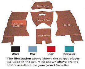 Installation. The Daytona Carpet Set is designed for a direct fit in the 1959 Corvette Convertible. Installation is straightforward, with the carpet pieces fitting into place over the factory floor pan. No special tools are required, making it an easy upgrade for any restoration project.