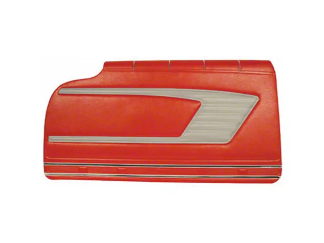 1959 El Camino is a beautiful American automotive classic. The El Camino Store offers these high quality, Door Panels, Assembled, for your restoration project or part replacement. These high quality door panels are preassembled using new waterproof die cut panels and galvanized door edge bands with nails attached. Correct Seville grain vinyls in two colors with the center Herringbone Scallop design inserts. 3 Upper Mylar stripes on the top and heat sealed lower line design with mylar horizontal strips. Window felts and lock knob ferrules attached. Included are vinyl covered front kick panels, 8 yards of cloth windlace and extra Seville vinyl for front armrests. Do not settle for second rate parts for your 1959 El Camino, use only the best for your