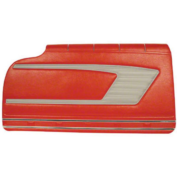 1959 El Camino is a beautiful American automotive classic. The El Camino Store offers these high quality, Door Panels, Assembled, for your restoration project or part replacement. These high quality door panels are preassembled using new waterproof die cut panels and galvanized door edge bands with nails attached. Correct Seville grain vinyls in two colors with the center Herringbone Scallop design inserts. 3 Upper Mylar stripes on the top and heat sealed lower line design with mylar horizontal strips. Window felts and lock knob ferrules attached. Included are vinyl covered front kick panels, 8 yards of cloth windlace and extra Seville vinyl for front armrests. Do not settle for second rate parts for your 1959 El Camino, use only the best for your