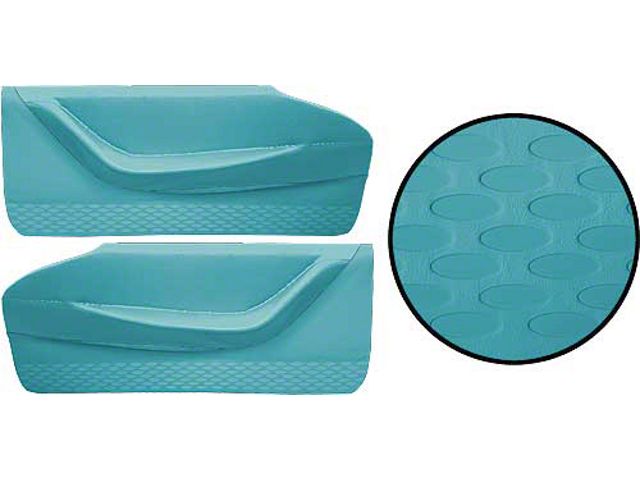 1958-1959 door trim panels are Bison grain vinyl and have built-in armrests and embossing on the lower section as original. The first color listed is the color of the upper part of the door panel, the second color is the lower.