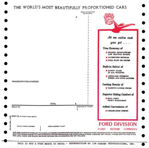Window Price Sticker, New Car (1959 Ford Thunderbird)