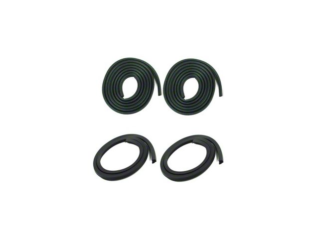 This is a 4 piece kit that fits both driver and passenger doors. The main door seal glues on the body (adhesive not included), the upper seal glues on the top part of the door.