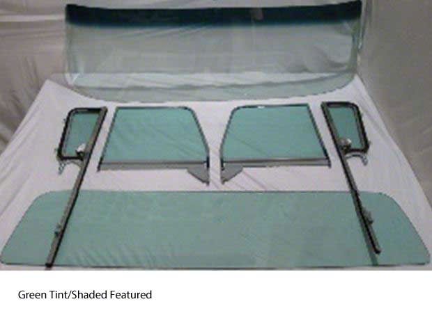 • 6-piece kit includes windshield, vent window assemblies-with post, assembled door windows, rear window