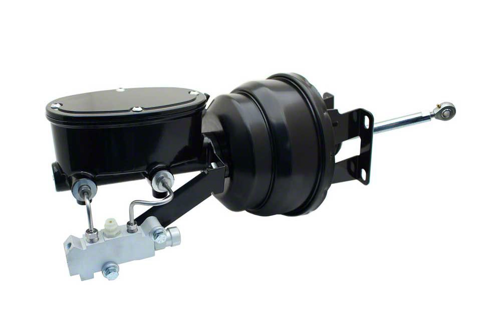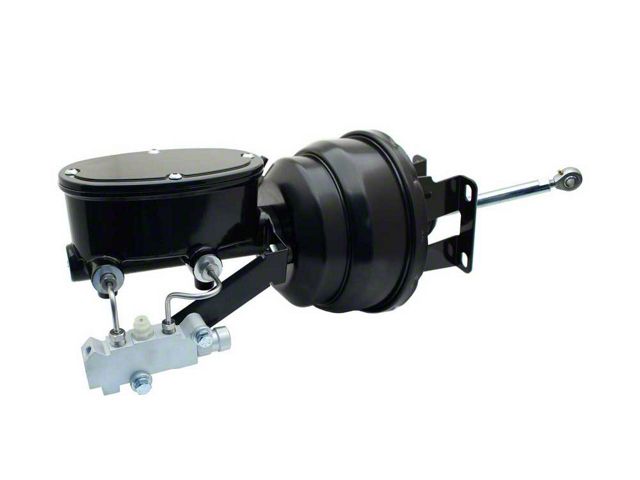 This black out power brake unit featuring the smooth oval top master cylinder has a sleek look with durable quality that will preserve over time. The 8" dual black powder coated brake booster with matching brackets give you both the performance of power brakes and the quality look with out busting the budget!