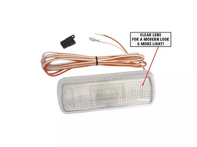 Good interior lighting is essential. Our LED dome light assembly is an upgrade over the original dome light. The clear lens gives a modern look and allows better illumination. Chrome base, wiring and a super bright LED bulb are included.