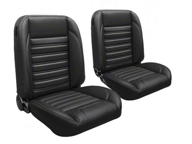 TMI Low Back Pro-Series Sport Bucket Seats give your truck a cutting edge look. The upgraded vinyl seats feature your choice of stitch and grommet colors. These assembled seats come complete with molded seat foam and tubular steel frames and feature a reclining mechanism, slider tracks and easy to install brackets. Handcrafted in the USA.