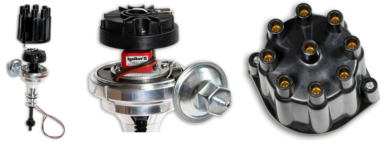 These PerTronix Flame-Thrower plug and play billet distributors with Ignitor II?? module have a precision CNC machined 6061-T6 billet aluminum housing that is lightweight yet strong. Polished billet aluminum housings provide the option to brighten up the engine bay. Upper ball bearings and lower bushings reduce vibrations at higher RPMs. Each one is equipped with a vacuum advance lockout that allows removal of the vacuum advance for hardcore performance and racing applications where fuel economy is not a concern. The lockout device stabilizes the timing and allows the mechanical advance to operate properly and produce more accurate ignition timing. There are even fully adjustable mechanical advance spring and limiters to tailor the advance curve. PerTro