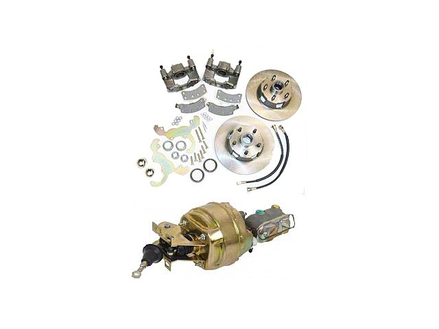 We are pleased to offer this new power disc brake conversion for converting your original manual drum brake system to power front discs. Kit includes a new power booster, and dual bowl master cylinder, large high quality rotors, loaded calipers, brake hoses, bearings, and seals. All components are completely assembled for easy and quick installation. This kit will not fit factory 13 or 14 inch wheels. 15 inch wheel minimum required. Also included in this money saving package is a new power brake booster. This unit gives you incredible braking capacity never offered originally on your classic Ford. We have found this booster to be the best braking power available for your classic Ford or Mercury, and far superior to single reservoir styles being sold by othe