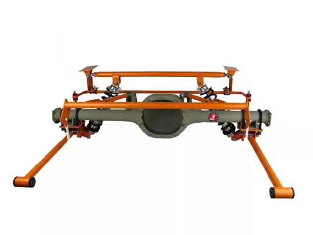 This rear package is ride height and ride comfort adjustable. It incorporates true billet aluminum 12 position ride adjustable coil over shocks and springs with adjustable bracket mounts. It is fully triangulated with "quick turn" pinion adjustment and includes a 3/4" sway bar kit for body roll control. Manufactured from U.S.A. D.O.M. steel tubing, this kit features American made chrome moly rod ends and all grade 8 bolts. Fits Ford 8, 8.8 & 9 inch rear ends. DOES NOT INCLUDE REAR END HOUSING .