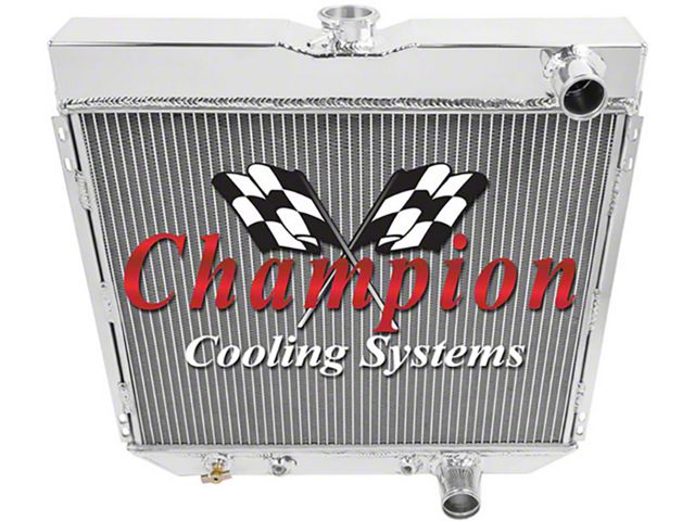 Your classic Ford can get hot... really hot! Driving and idling in traffic on 90+ degree summer days can push your stock cooling system to its limits... and beyond. Factory brass radiators are barely satisfactory at transferring heat, which is why they overheat when you least expect it. Why take chances with your valuable engine? Step up to Champion's all-aluminum, high efficiency radiator. Aluminum alloy is a far superior metal to the original equipment copper-brass construction because it dissipates heat much more quickly and cools down much more rapidly. Heat transfer from your engine to the atmosphere is greatly increased, thereby lowering the temperature of the engine coolant dramatically. An aluminum radiator will out-cool a copper/brass radiator of similar size and