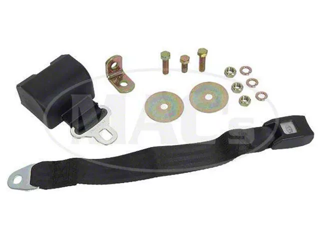 New retractable modern style plastic push button seat belts are now available. These are excellent replacement style units, but are not styled as originals. Includes all mounting hardware. Available in black. Please be aware that this is a replacement belt and will not be an exact match to what was offered originally, but is much easier to use.