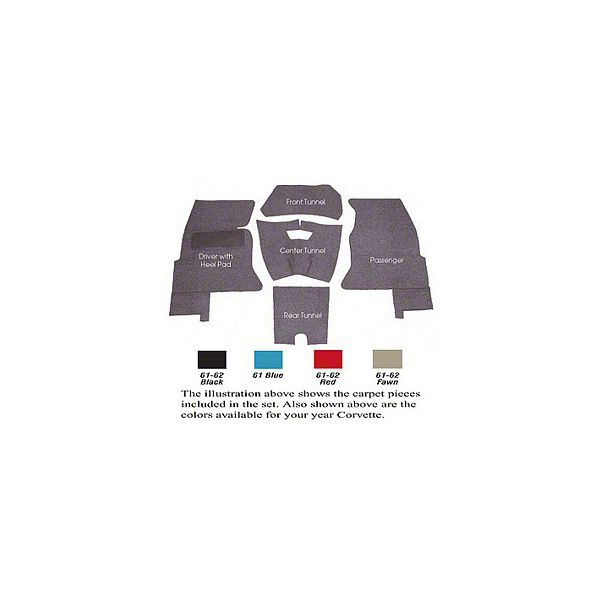 1961-1962 Corvette Carpet Set Tuxedo (Convertible)Find parts that fit my vehicle