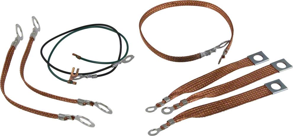 The most common electrical problem in a Corvette is a bad ground. The Corvette with its electrically non-conductive fiberglass body requires the use of ground straps for everything from preventing radio static to being able to run smoothly. The ground strap sets from Eckler's are exact reproductions of the original straps. Manufactured using the correct type and length of copper braiding, the ground straps can be quickly attached using the original bolts. Be sure to thoroughly clean the ground strap contact surfaces to ensure a good electrical path. Restore the electrical performance of your Corvette with reproduction ground straps from Eckler's.