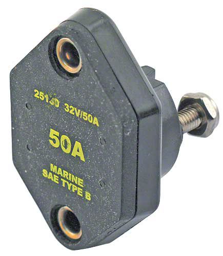This is the master circuit breaker that controls the power to the top motor and relays, it is mounted under the hood.