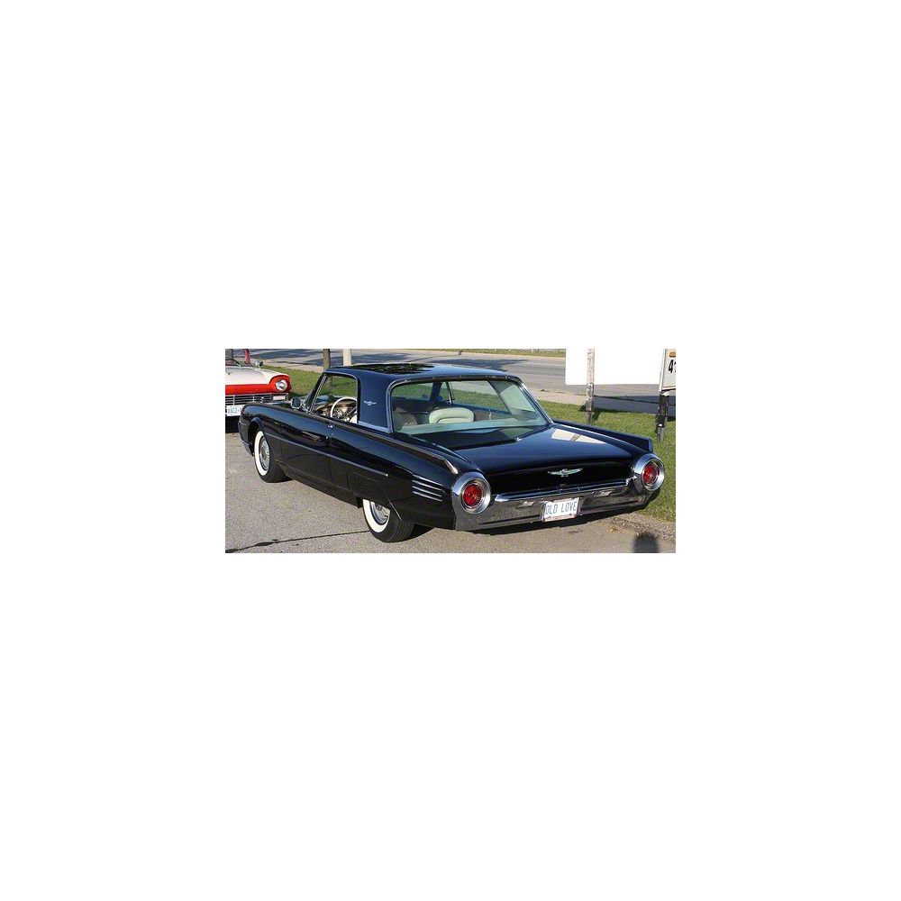 Back glass for your 61-63 Ford Thunderbird. The back glass is tempered and comes with your choice of clear, green tint or light grey tint. Fits 2door hard tops.