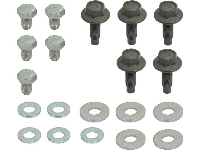 7 hex head bolts, 10 flat washers and 3 faceted-flange-head black oxide finish bolts.