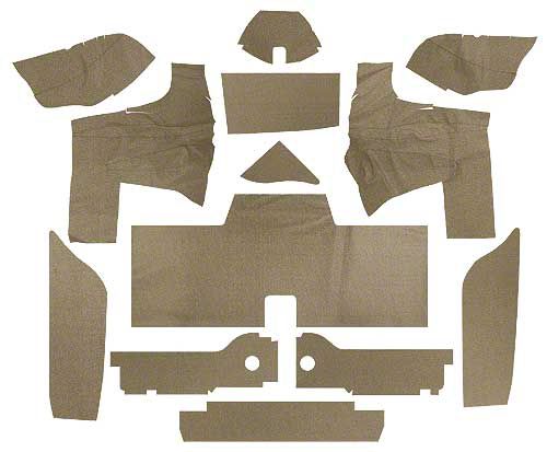 Originally, a material called Burtex was used for all trunk interiors in 1958 thru 1966. Unavailable for a long period, it has recently been reproduced and we are proud to announce that Concours correct trunk interiors are now available. Included are the floor mat & all the printed side & end boards.