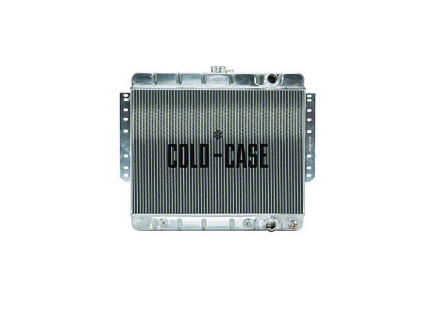 Eckler’s Late Great Chevy is proud to offer this quality all aluminum radiator by COLD-CASE at an affordable price compared to other high price aluminum radiators on the market. This radiator is an exact fit (not a universal replacement) and replaces your original copper / brass radiator and will cool like a modern car! COLD-CASE radiators are Tig welded 100% aluminum and absolutely beautiful! Don't buy a 3 or 4 row aluminum radiator! It doesn't cool as good as this oversize 2 row model.