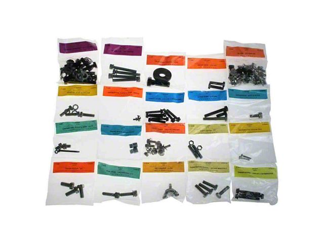 Econoline master kit includes O.E. hardware to attach all the following items: air cleaner, carburetor, crankshaft pulley, distributor, engine tag, exhaust manifolds, fuel pump, heat shroud, ignition coil, intake manifold, oil filter adapter, oil pan, timing cover, valve covers, water neck & water pump.