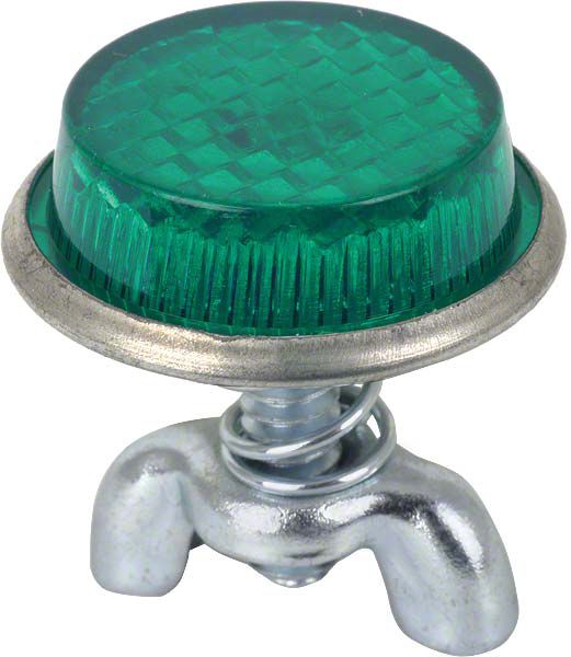 This holds the license plate to the bracket. The bolt has a green reflector. A great safety item.