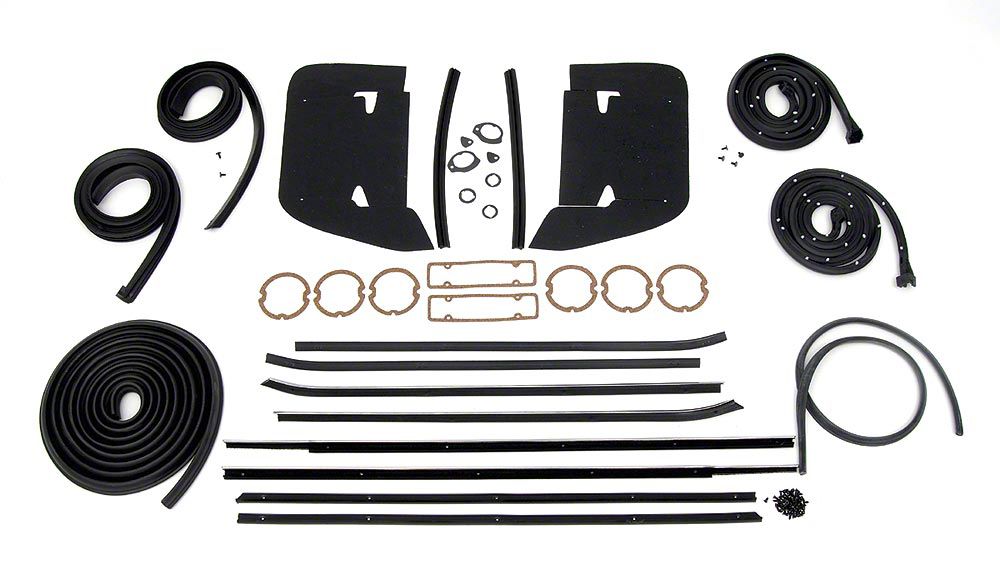 No vehicle is complete without the protection of weatherstripping and seals, however, not all weatherstripping and seals are the same. You can count on Eckler's to bring you only the highest quality weatherstripping and seals, manufactured by SoffSeal. These SoffSeal brand parts are made to original factory dimensions, so you won't have to worry about slamming doors or struggling during installation. SoffSeal uses the latest technology, so its weatherstrip and seals are guaranteed not to discolor, dry, or deteriorate. Your perfect seal will stay that way. By buying your weatherstrip from Eckler's you can rest assured that quality, longevity and perfect fit are our top concerns. This 1961 Impala 2-door hardtop weatherstrip and seal kit includes: door weatherstrips, roofrail