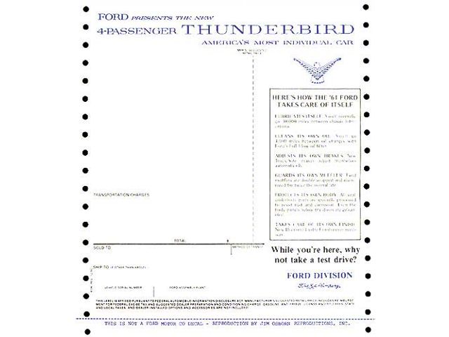 Window Price Sticker, New Car (1961 Ford Thunderbird)