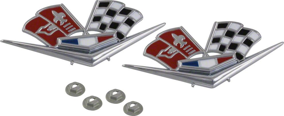 Application. These Fender Emblems Crossed-Flags are specifically designed for the 1962-1963 Corvette, ensuring a perfect fit and adding a touch of classic style to your vehicle.