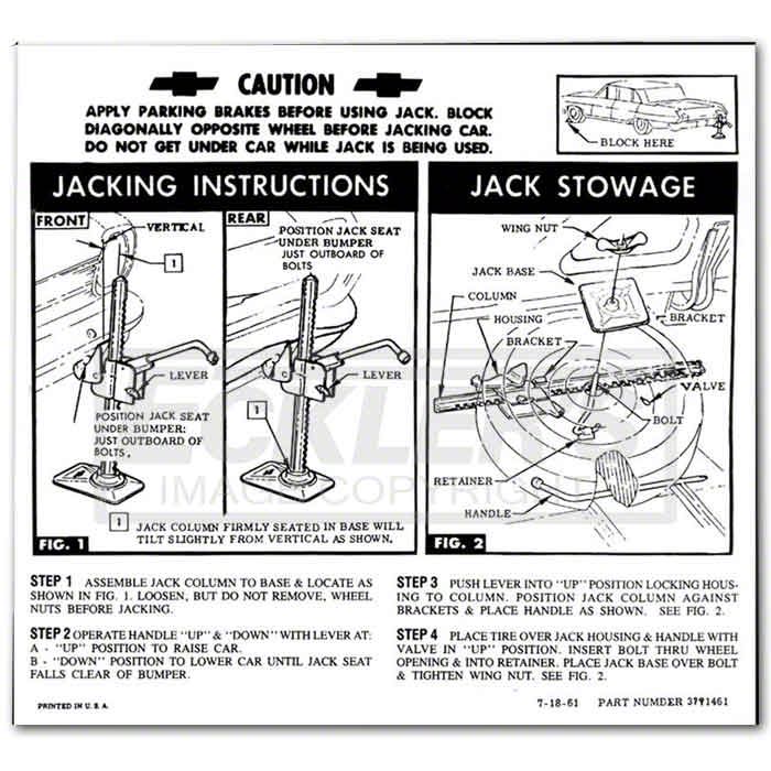 Eckler's no longer carries the Jack Instruction Decal, Regular Wheel, Coupe And Sedan (62-63 Chevy II).