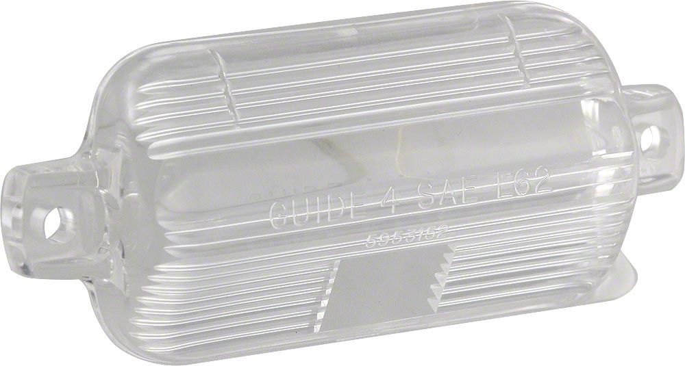 This license lamp lens is injection molded with UV-stabilized clear acrylic. Every detail of this lens is correct, right down to the word Guide and GM markings.