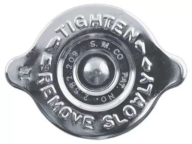 This is an exact reproduction replacement radiator cap. S.M. Co. stamping is on this cap just like what many Fords and Mercurys originally had. Like the original, it has no upper seal. It will maintain the correct 14 Lb. pressure your cooling system was originally designed for.