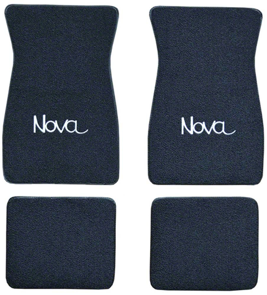 Rain, snow, sand and mud can wreck your 1962, 1963, 1964, 1965, 1966 or 1967 Nova or Chevy II's carpet. A set of floor mats is the best way you can keep your carpet looking new. Eckler's Nova has teamed with Auto Custom Carpets to bring you the best carpeted mats available. This superior four piece set is manufactured using the same material as our carpet sets so there is no worry about color and texture match. Precision die cutting assures a perfect fit. Our carpeted floor mats also feature an antiskid rubber backing so there is no problem with "crawl". Protect your 1962, 1963, 1964, 1965, 1966 or 1967 Nova or Chevy II's interior with a set of ACC carpet floor mats from Eckler's Nova. Note: Custom Ordered Item-Non Returnable