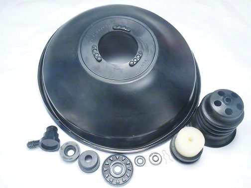 Restore your original Delco Moraine Brake Booster back to its original OEM performance with Eckler's Major Repair Kit. The kit includes the following: Front housing seal, check valve & grommet kit, 2 push rod o-rings, reaction bumper, lock ring, large control valve o-ring, poppet valve, diaphragm, muffler, air valve rod pin, rear housing seal, and push rod boot.