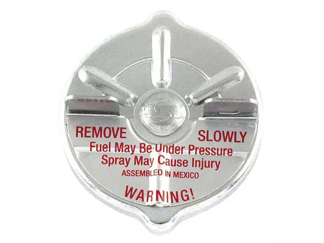 Pressure relief prevents fuel vapors from exiting the fuel system under normal operating conditions. This allows an escape path for pressure in the event of an impact situation where the fuel tank has collapsed. It also permits pressure to escape if the vapor management system malfunctions. OE Vacuum relief prevents fuel vapors from exiting the fuel system via the fill tube under normal operations. This allows an alternative path for air to flow into the tank if there is an obstruction in the vapor recovery or vapor management systems. It also permits the fuel system to normalize air pressure during natural vacuum situations. A "Lost Motion" feature permits the cap handle some freedom to turn while maintaining a seal, which could aid in the preven