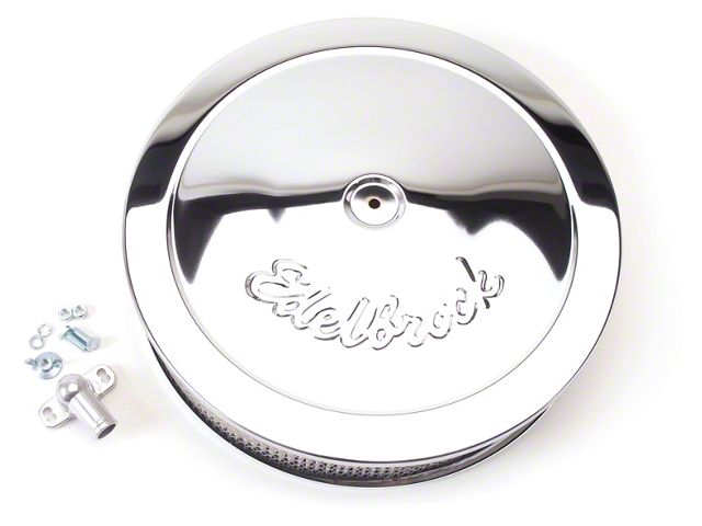 Construction and Appearance. This air cleaner features a deeper flange with its 3-inch paper element. Additionally it sports a multi-piece performance-grade design with a 14-inch diameter perfect for Edelbrock carburetors.