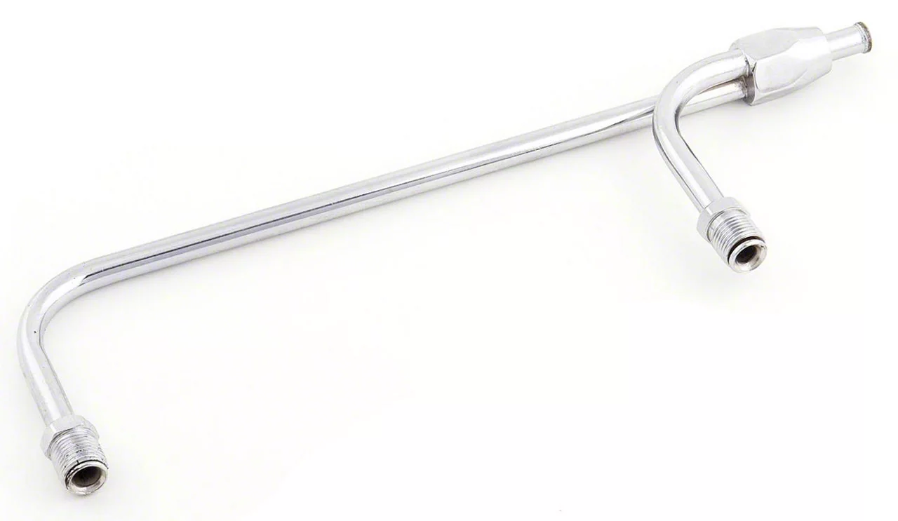 Has Silver Brazed Connections Chrome Plated 3/8 In Copper Hex Design Fittings Fits Most Holley 4160 Style Carburetors w/ Primary Metering Block & Secondary Metering Plate This is the perfect fuel supply line for dual-inlet Holley 4bbl 4160 Series Carburetors. It has generous 3/8" tubes to supply plenty of fuel, and the threaded fittings have the necessary 8-21/32" centers for the 4160. The bright chrome plating of the gas line kit adds the special "touch of class" to your engine compartment. It's constructed with copper tubing, brass fittings and silver brazed connections. The "hex" design provides wrenching area for easier installation of fittings. It does not include inverted flare fittings. If your carburetor requires 7/8-20 threaded inlet, please use Holley part# 26-26 fittings.