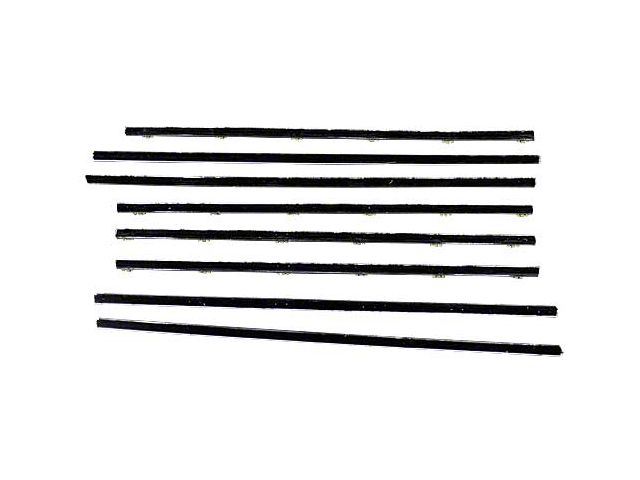 This is the weatherstripping that fits in the top edge of your door. All window felt kits include outer door piece as well as the inner pieces that attach to the top of your door panel. Manufactured to fit and appear like the original. Sometimes called window "Fuzzies". Kits that specify "Without" Chrome are referring to the wide band of chrome, stainless, or aluminum offered on some vehicles. Each kit designated without chrome will still have the narrow band of stainless trim on the windowfelt.