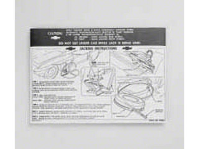 Authentic Restoration Detail. The Jacking Instruction Decal is an exact reproduction of the original decal found in the 1963-1966 Corvette with standard wheels. This decal is essential for enthusiasts looking to restore their Corvette to factory specifications, providing an authentic finishing touch to your vehicle's restoration.